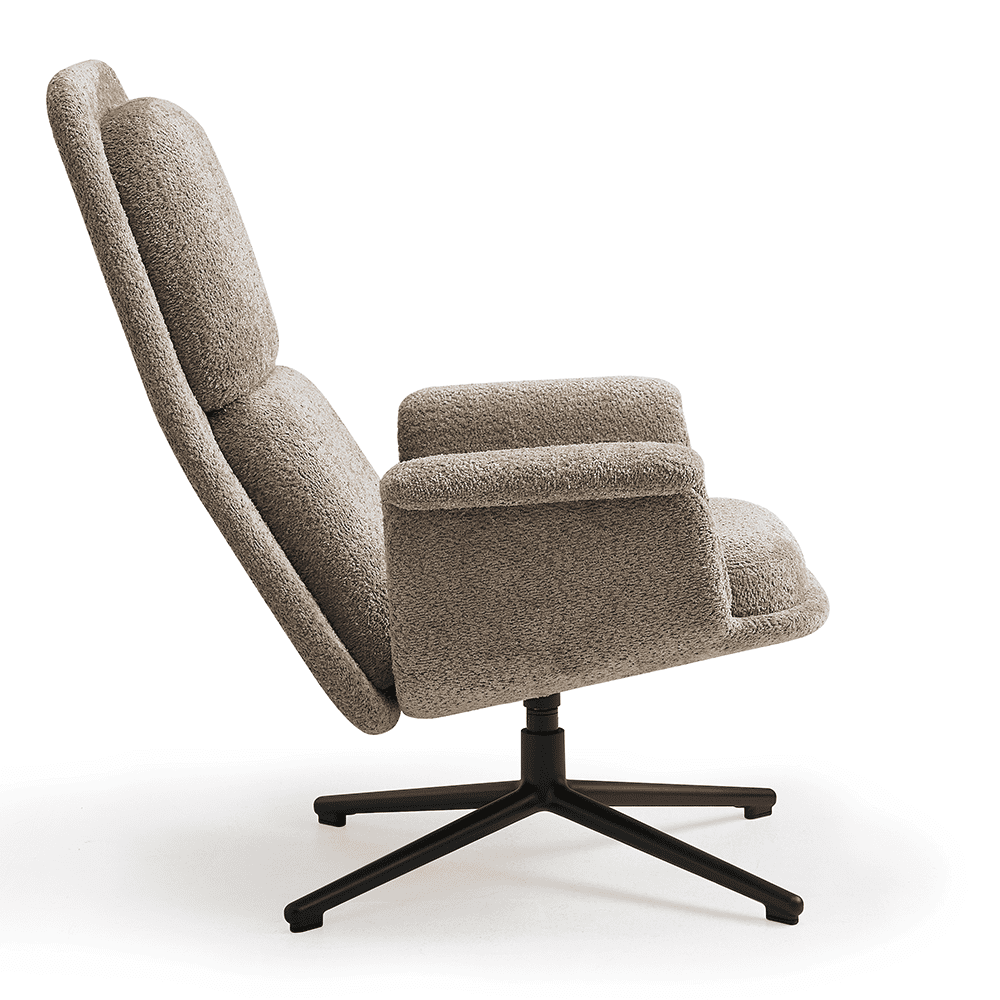 De Velina is een stijlvolle fauteuil die extra zitcomfort biedt dankzij de drievoudig gevormde schuimlaag in zowel de zitting als de rugleuning. Elke contour is ontworpen om het lichaam optimaal te ondersteunen, zodat men urenlang ontspannen kan zitten.